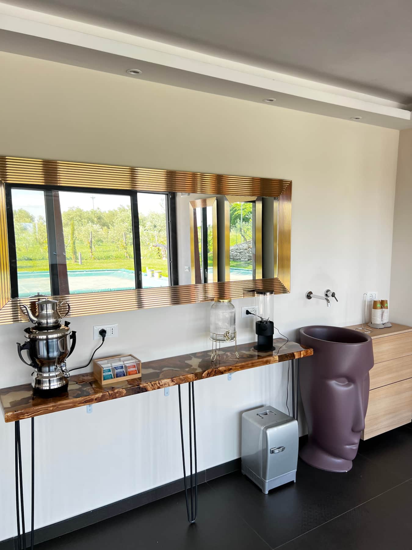 - Camera Venezia, uno stile particolare che richiama con i colori delle sue piastrelle il vetro di Venezia ed una particolarità unica…la doccia direttamente in camera da letto.